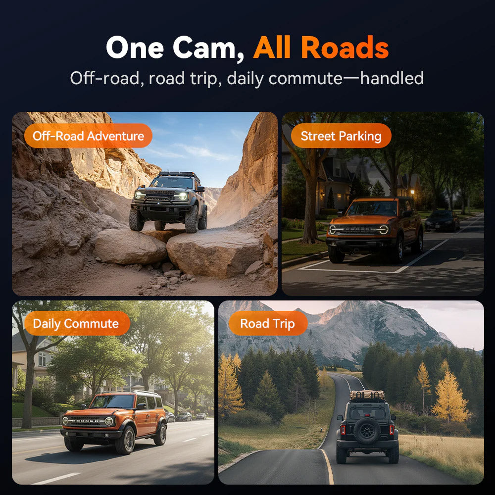 - 4k Front Camera, 2.5K Rear Camera, and 1080P Trail Camera